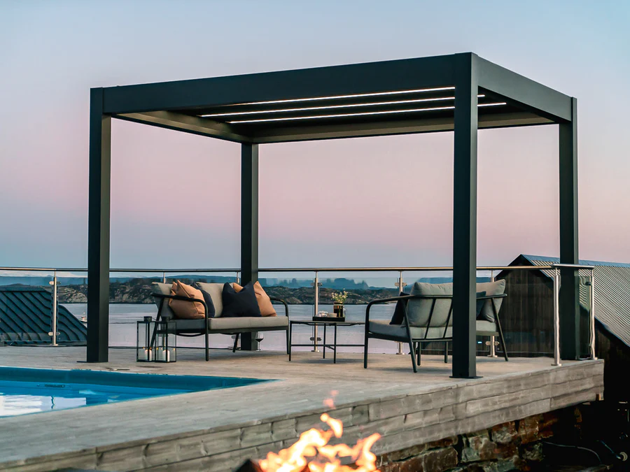 Cette pergola est construite sur une expérience de plus de 10 ans dans le domaine des pergolas en Europe. Le résultat est une construction robuste offrant un parfait équilibre entre confort et luxe.