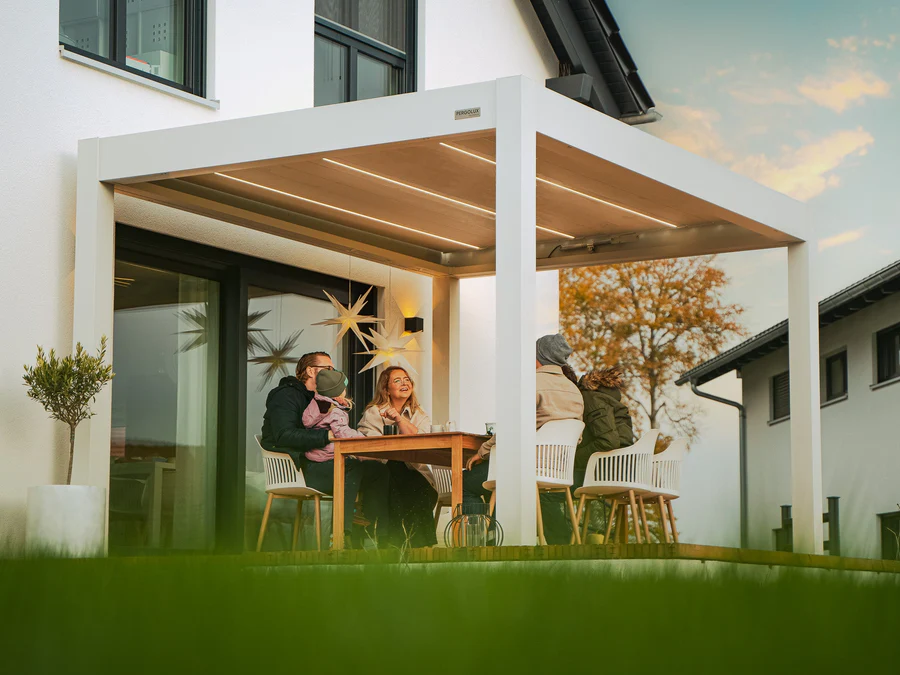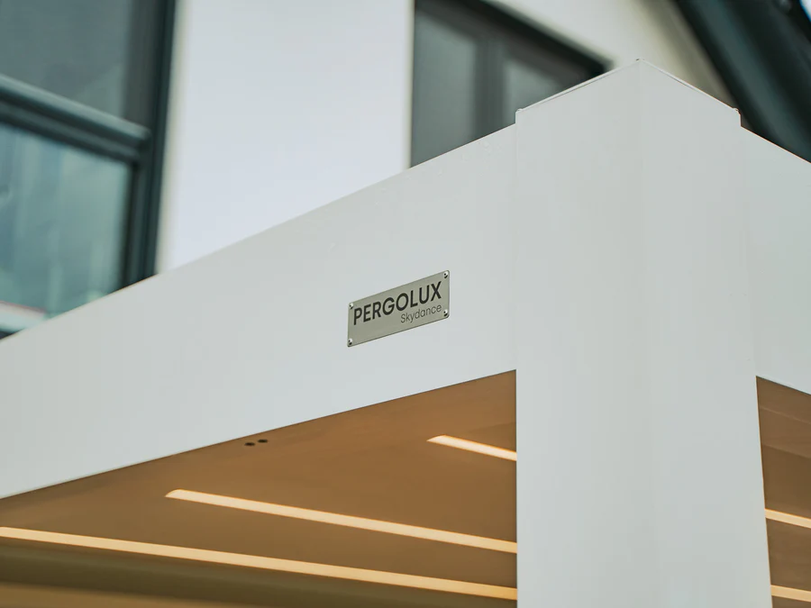 PERGOLUX Skydance est la réponse à de nombreux souhaits de nos clients : un design luxueux, un éclairage LED intégré et des lamelles ajustables électriquement.